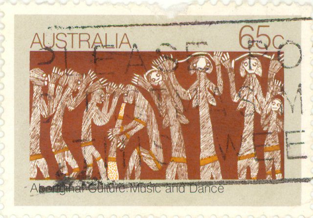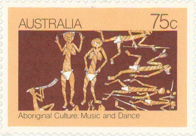 "Musicians and dancers", painting by Jimmy Galareya, Aboriginal bark painting by Jimmy Galareya. Mus...