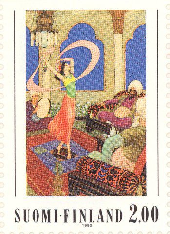 Woman oriental dancing in front of Pasha, musician, One of 6 s/s Rudolf Koivu