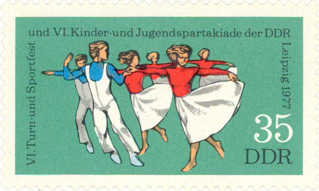 Folk dancers from the Rόgen Island, Workers' Festival, Rostock